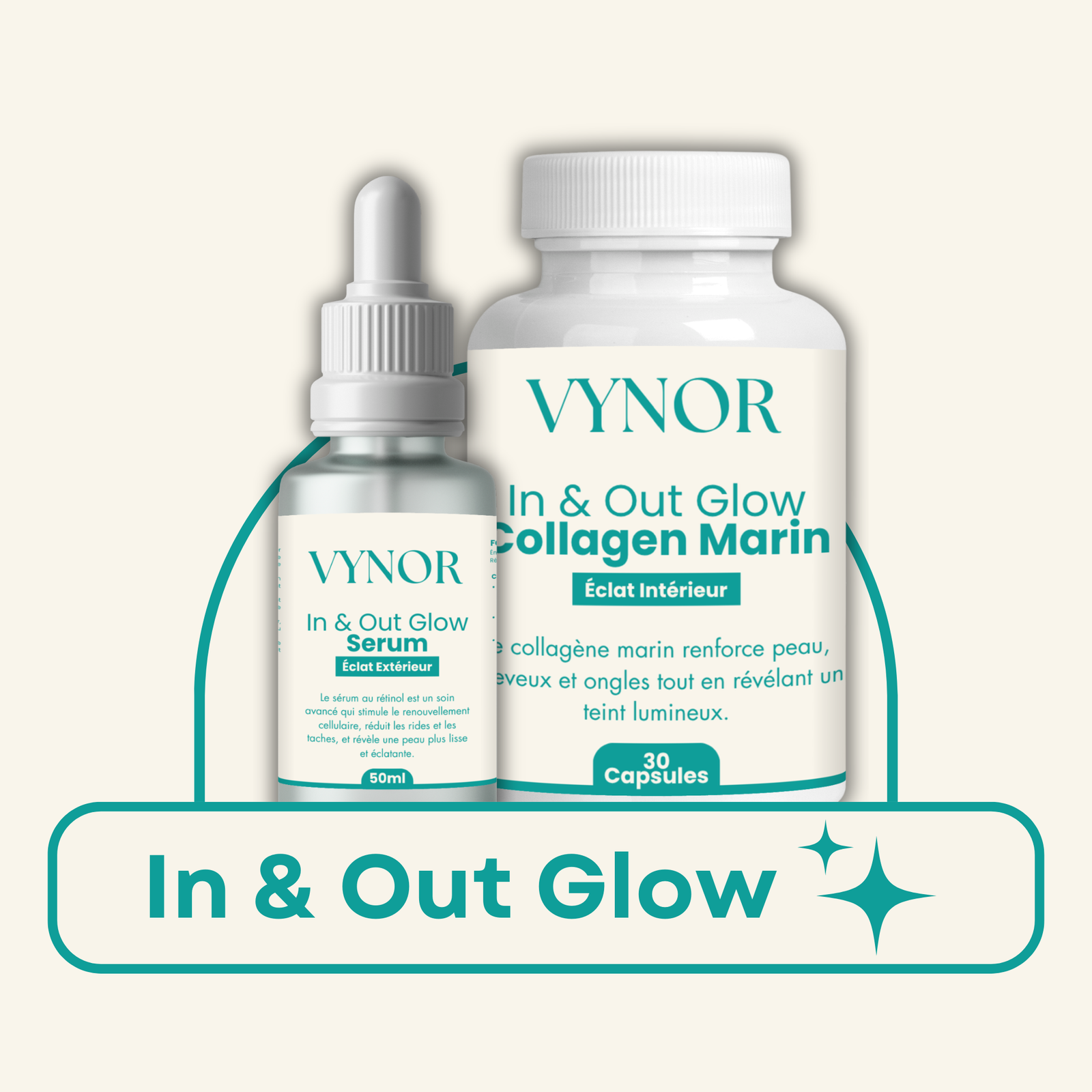 Vynor révèle l’éclat naturel de votre peau avec In & Out Glow. Un rituel complet pure et efficace qui nourrit de l’intérieur et sublime de l’extérieur. Beauté authentique avec lumière et douceur.